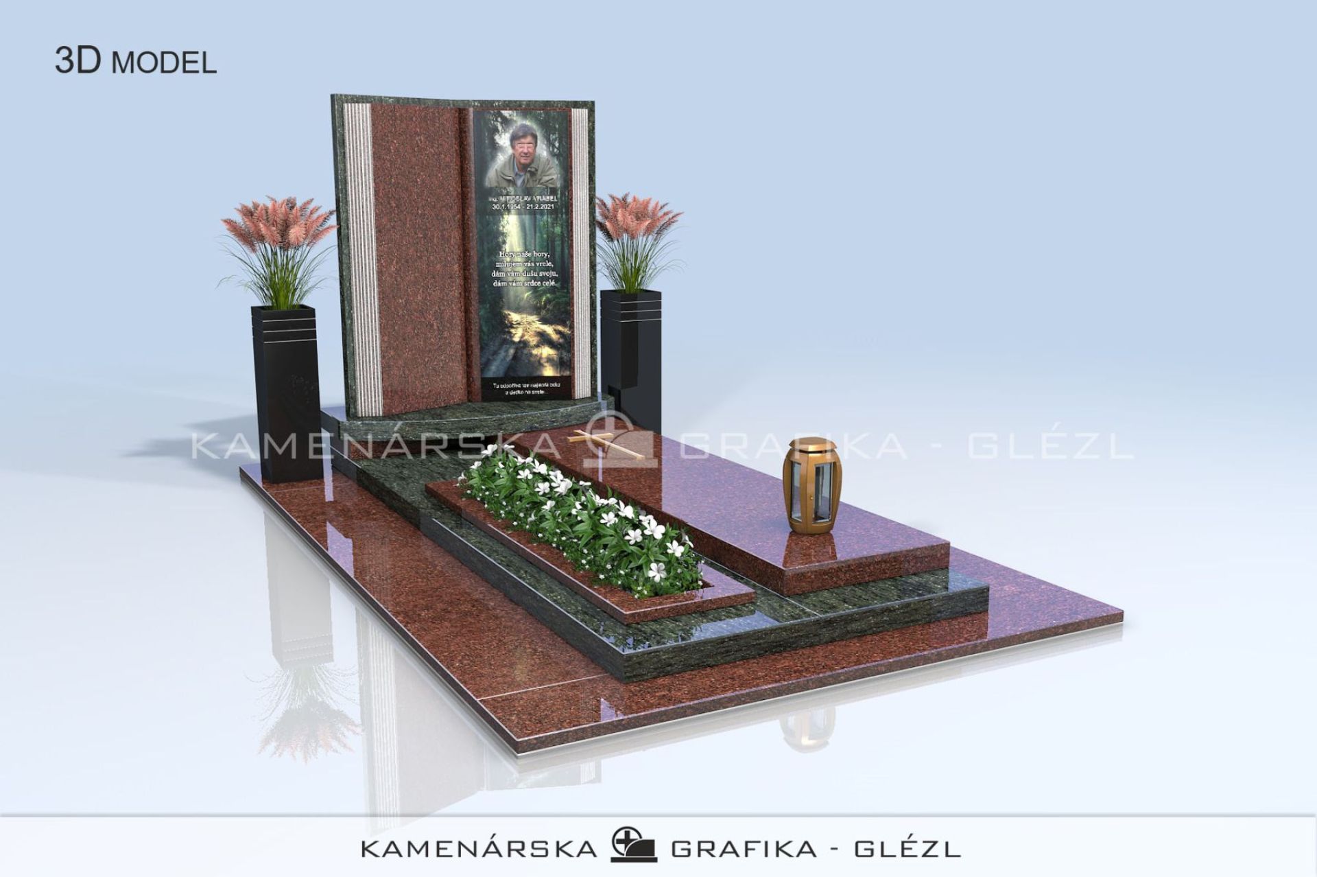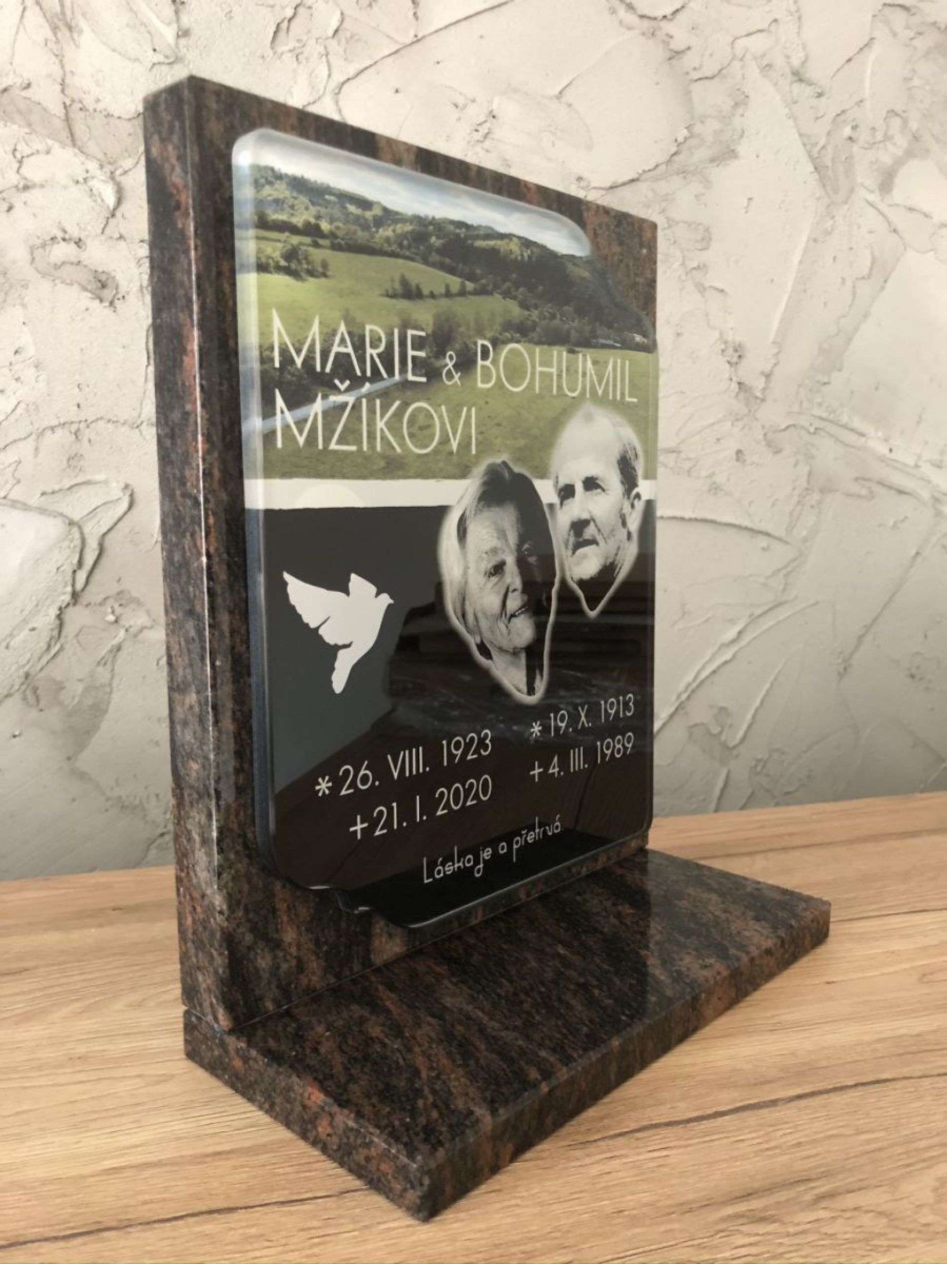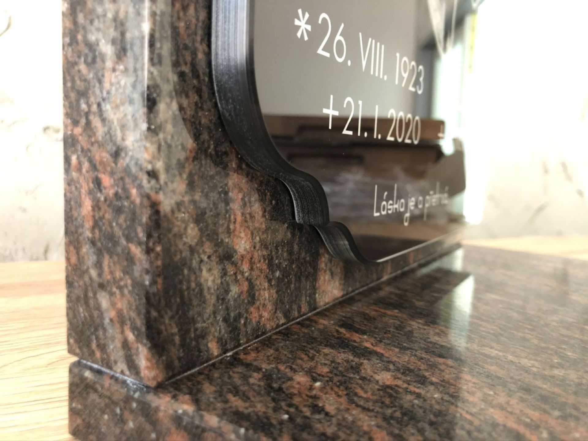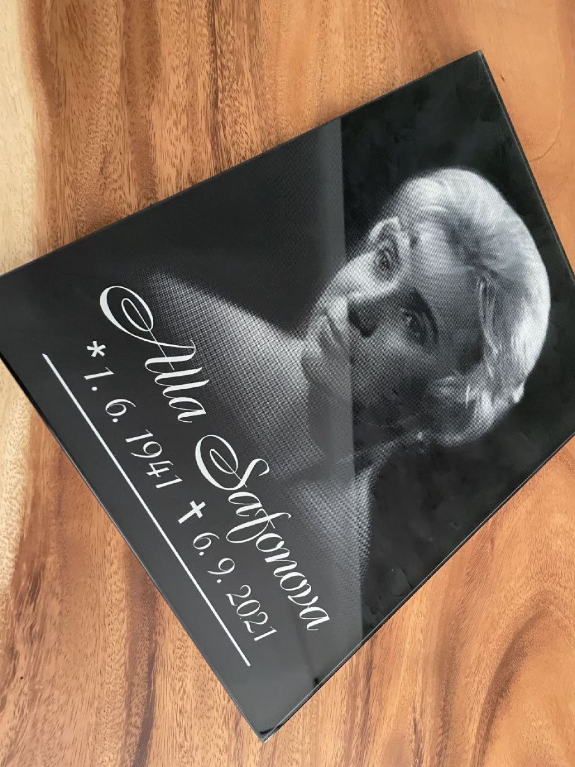 El vidrio es símbolo de pureza y elegancia atemporal. Nuestras lápidas de vidrio están fabricadas con vidrio extra claro, que no distorsiona los colores y aporta a la memoria un aspecto único. Gracias al preciso mecanizado CNC, garantizamos la máxima precisión y calidad en cada detalle. Ya sea que elija una placa sutil por su ligereza y delicadeza, o un vidrio macizo de 10–12 mm de grosor por su resistencia y aspecto impresionante, siempre obtendrá un producto de la más alta calidad. También ofrecemos la posibilidad de grabado y personalización, incluyendo una imagen en la tumba que preserve los recuerdos de forma perfecta.