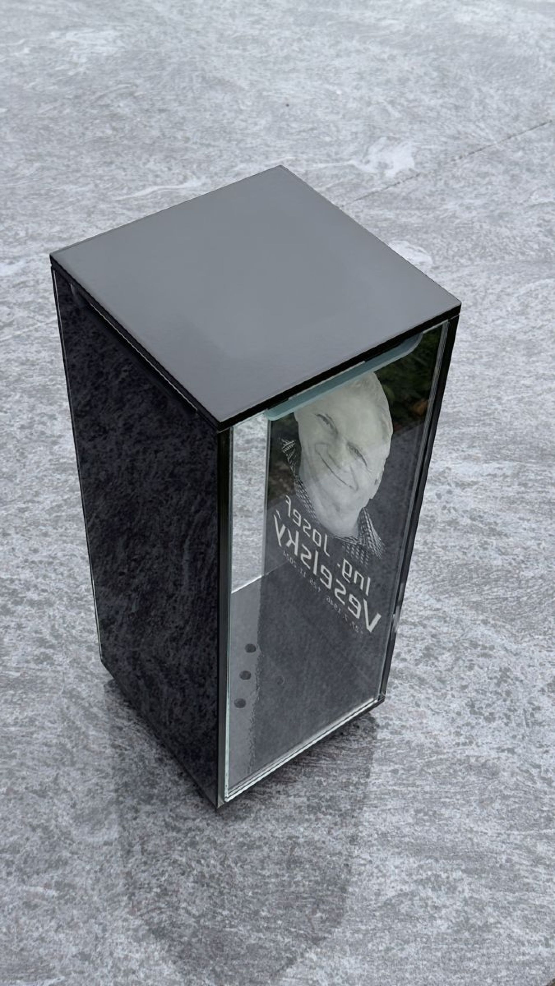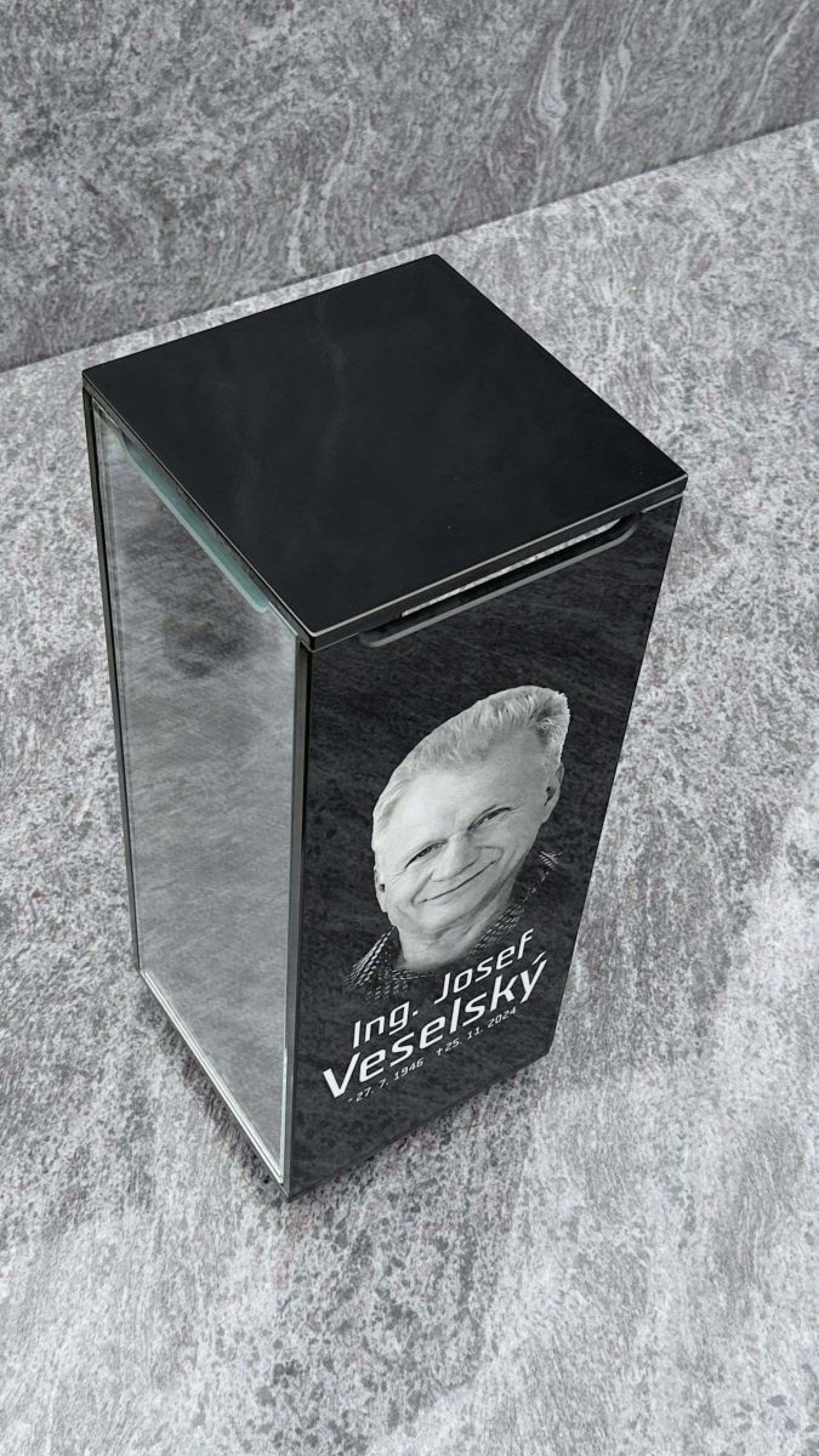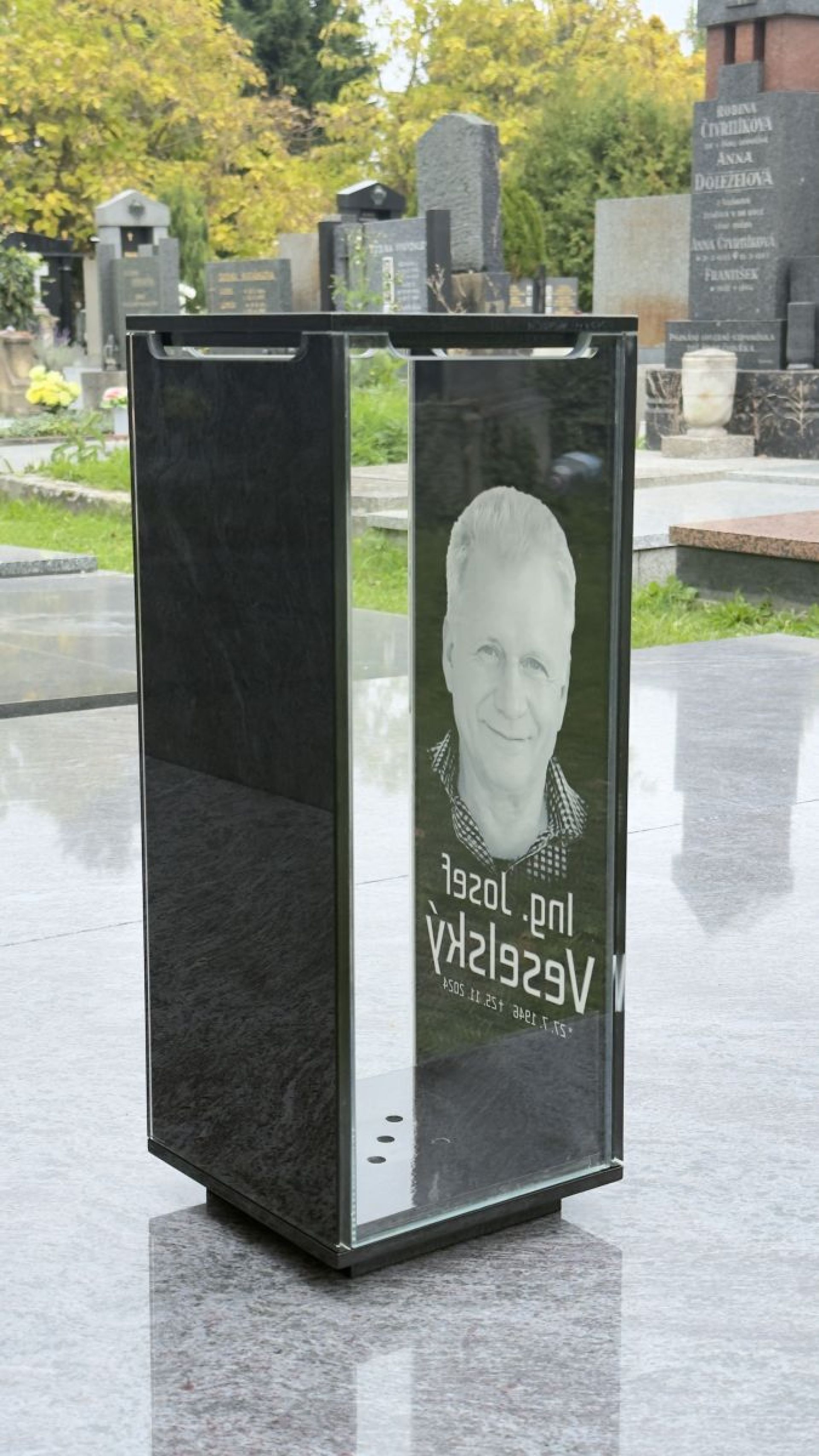 Nejenom náhrobní deska musí být místo, které nám může připomínat naše zesnulé. Nejenom studený náhrobní kámen k nám může promlouvat skrz naše vzpomínky. Zapalte svíčku v lucerně s tváří, kterou tak dobře znáte. Plápolající plamínek pak prosvítí a rozehřeje studené sklo, které je věčné tak, jako je náš smutek. Nabízíme vám lucerny, které jsou vyrobeny obdobně z kaleného skla s keramickým potiskem. Jednotlivé díly lucerny jsou slepeny lepidlem, které snese vysokou vlhkost a nízké i vysoké teploty. Podstava a horní kryt jsou vyrobeny z různých materiálů, které odolají všem povětrnostním podmínkám po velkou řadu let. U těchto výrobků obdobně garantujeme barevnost v exteriéru 100 let.